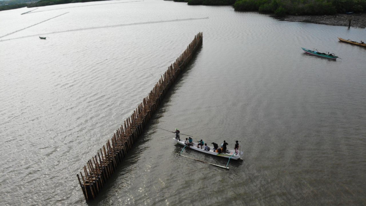Yusuf menambahkan, struktur semi-permeable atau sering juga disebut hybrid engineering ini dapat mengumpulkan sedimen untuk mangrove agar tumbuh secara alami dan merevitalisasi lahan tambak.